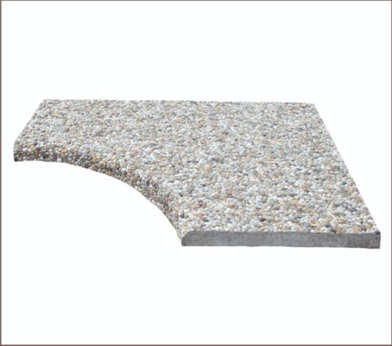 - Moderní bazénový lem typ Deska s povrchem vymývaného oblázku barvy přírodní nebo vymývané různobarevné drtě.