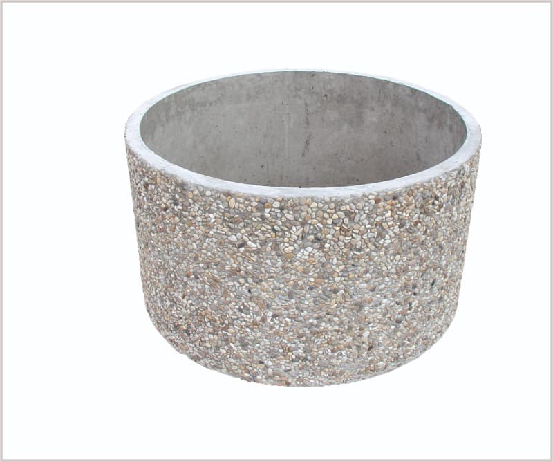 Betonová skruž s vymývaným povrchem je vhodná na výsadbu zeleně ale i jako okrasná skruž na studnu. Při použití na studnu je možné dokoupit i zákrytový poklop ve stejném povrchu. Poklop se vyrábí půlený se zámkem. Tento poklop lze zakázkově vyrobit i s otvorem.