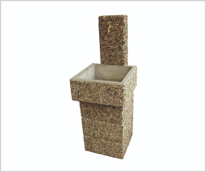 - Zahradní umyvadlo je vyrobeno z pěti snadno sestavitelných betonových dílů.